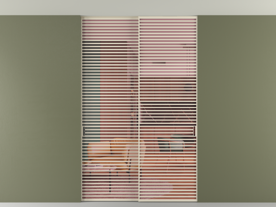 Во всех алюминиевых перегородках, независимо от типа установки, используется компланарный раздвижной механизм, благодаря которому декоративная крышка и полотно находятся в одной плоскости.